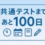 - 共通テストまであと100日!残りの期間で何ができる?【完全攻略】共通テスト直前100日で伸ばすための学習計画と実践戦術 共通テスト直前100日で伸ばすための学習計… 続きを読む: 共通テストまであと100日!残りの期間で何ができる?