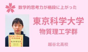 第一志望合格を果たすことはできなかったが、一つの目標であった国立大学現役合格を果たすことができて良かった。これもひとえに東進で培った知識と努力の賜物であると思う。